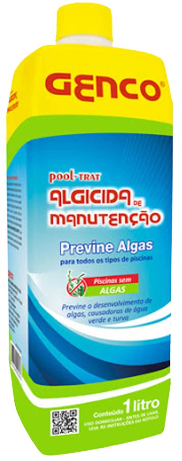Algicida de Manutenção previne a formação e a proliferação de algas em águas de piscinas (água esverdeada).