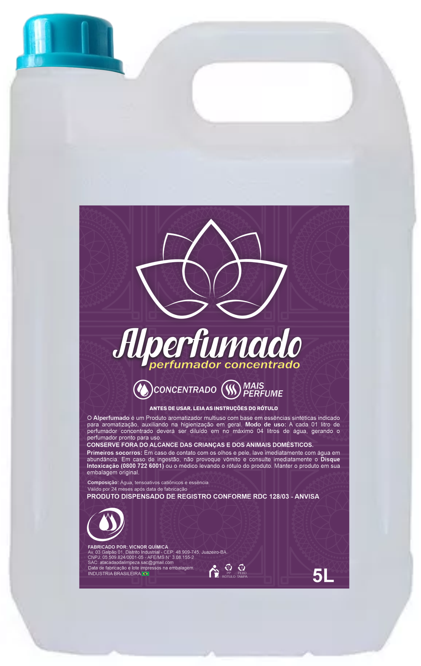 O Alperfumado é um Produto aromatizador multiuso com base em essências sintéticas indicado para aromatização, auxiliando na higienização em geral.