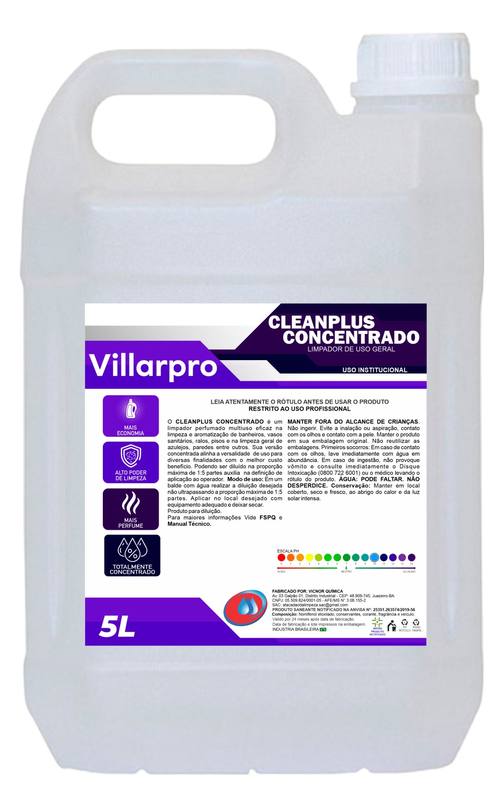 O CLEANPLUS CONCENTRADO é um limpador perfumado multiuso eficaz na limpeza e aromatização de banheiros, vasos sanitários, ralos, pisos e na limpeza geral de azulejos, paredes entre outros. Sua versão concentrada alinha a versalidade de uso para diversas finalidades com o melhor custo benefício.